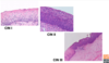 2 - change in cervical cells appearance, increase nuclear:cytoplasmic ratio, hyperchromatic
