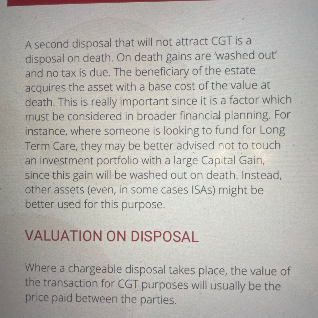 CGT disposal on death