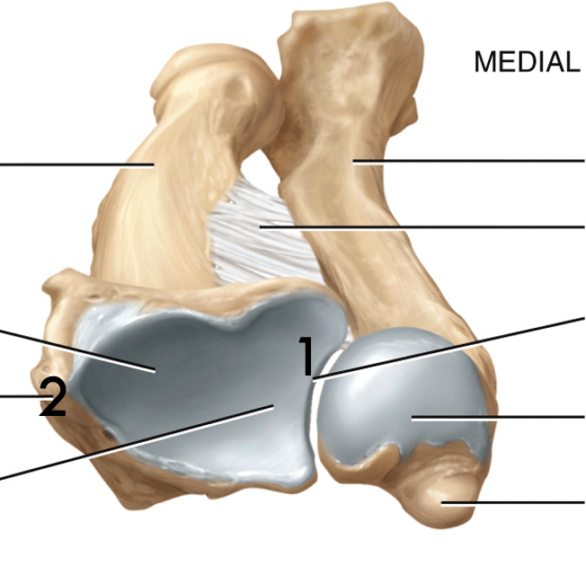 What scapula feature is on the anterior portion for attachment of tendons and ligaments?