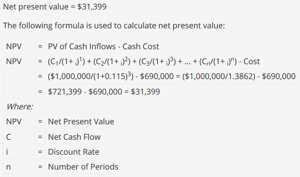 = [cash outflow in yr 1/ (1 + WACC)^1]
