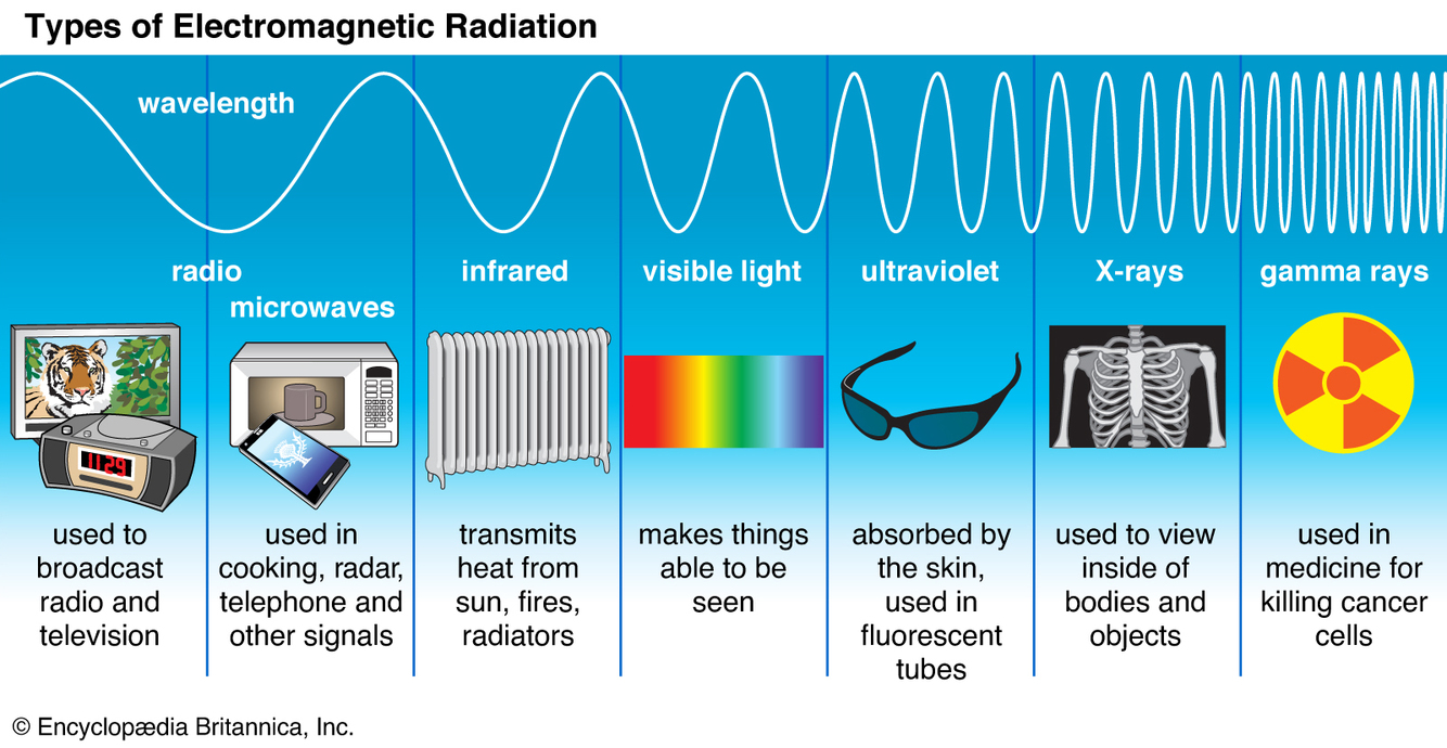x-ray and microwaves (includes UV, visible light and infrared light)