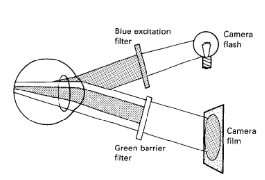 allows retinal + choroidal circulation to be studied by photographing passage of fluorescein through the vessels