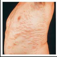 large erythematous to purplish red lesions and poikiloderma