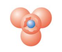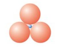 Each cation (small) is surrounded by three anions in the form of a planar equilateral triangle