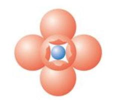 The cation is located at the center of a tetrahedron, with anions at each of the corners