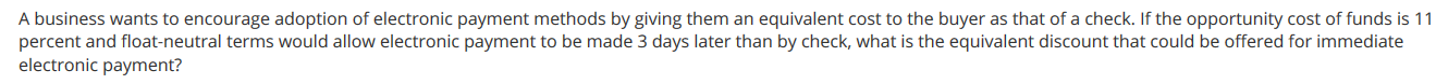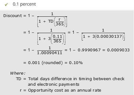 opportunity cost % per day x number of days float = discount to be offered