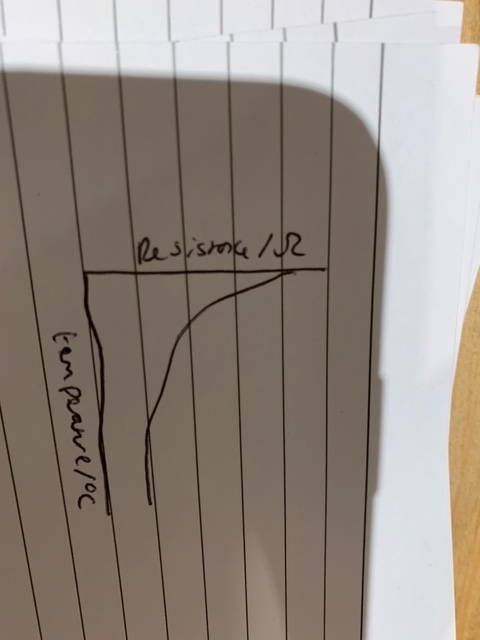 - Warming thermistor gives more electrons enough energy to escape from their atoms - so more charge carriers available.
