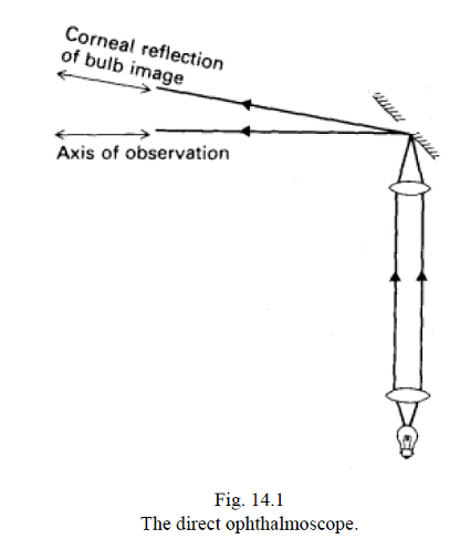 Broadly speaking how does a direct ophthalmoscope function?