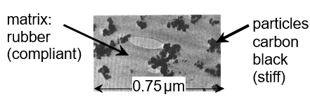 What are the matrix/particle components in automobile tire rubber?