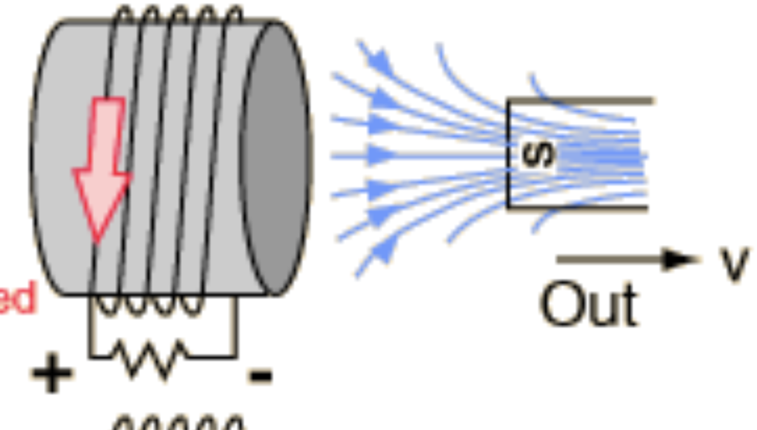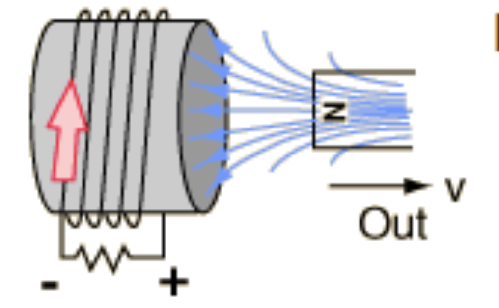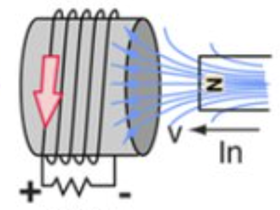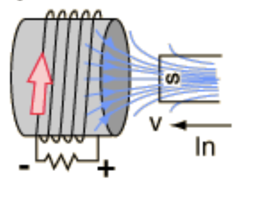 Lenz’s law states the direction of the induced current in a conductor is such that it produces a magentic field which opposes the change to the initial magnetic field