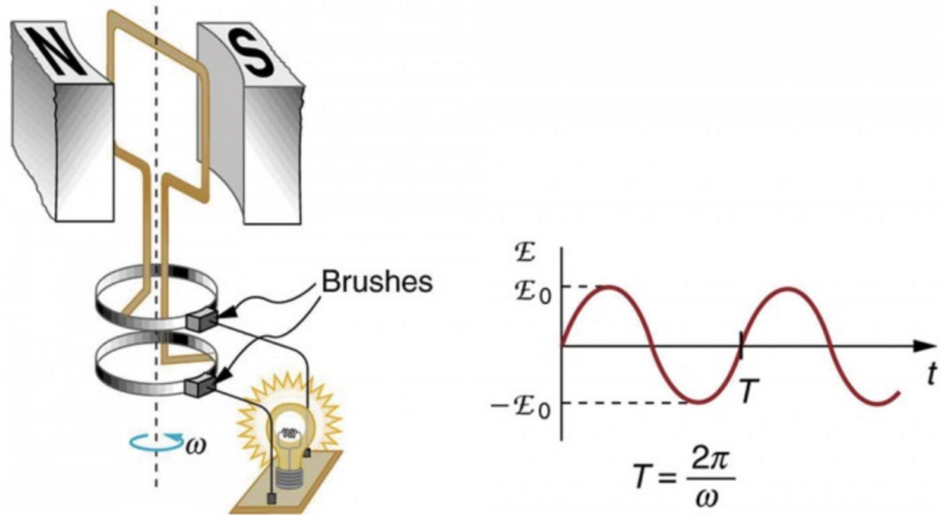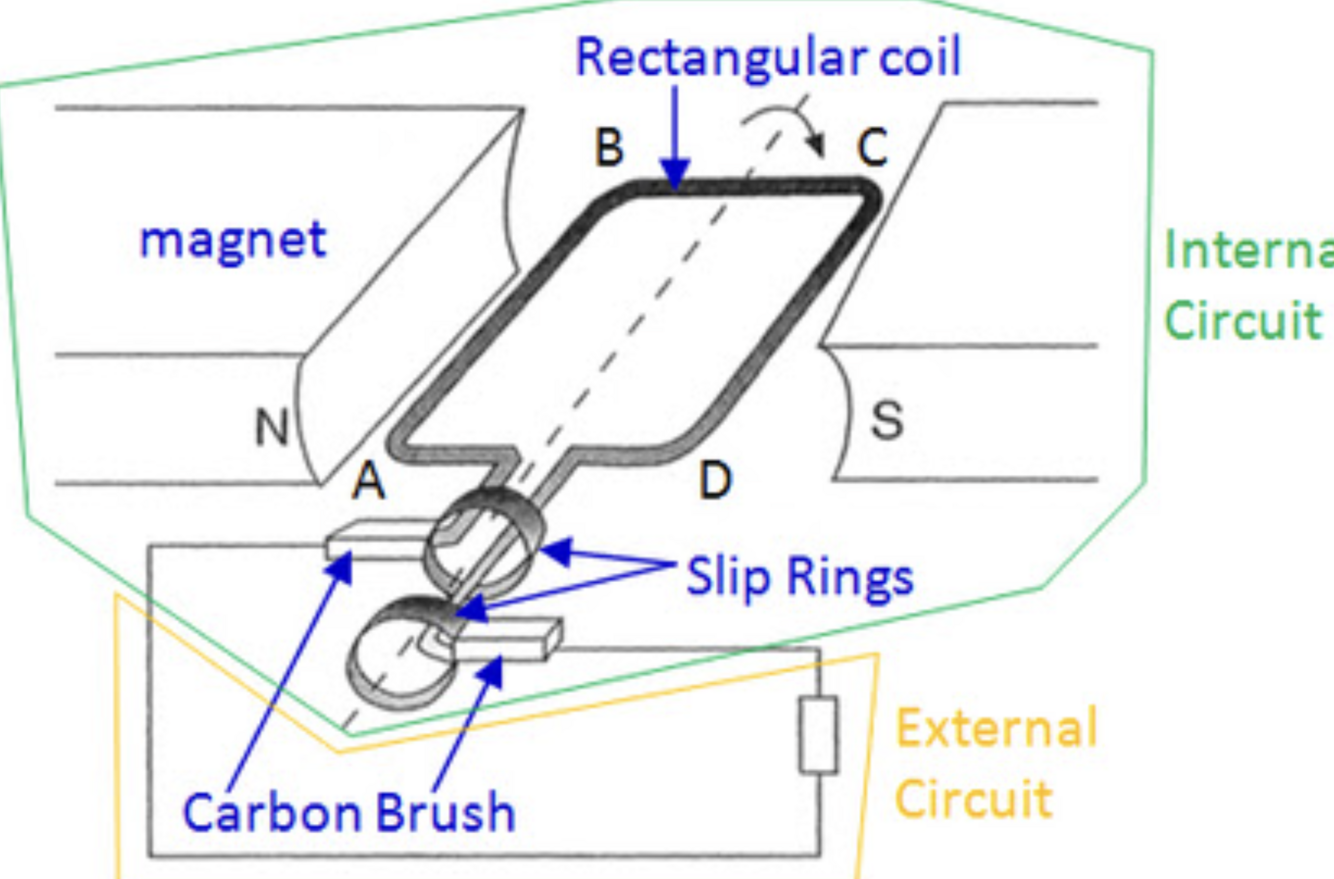 State the relationship between the coil wrapped around a soft iron core and the output voltage against time graph of an A.C generator