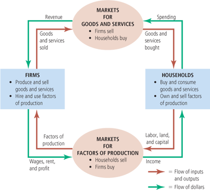 a visual model of the economy that shows how dollars flow through markets among households and firms