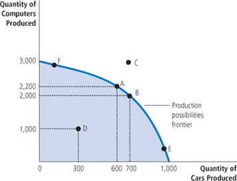 a graph that shows the combinations of output that the economy can possible produce given the available factors of production and the available production technology