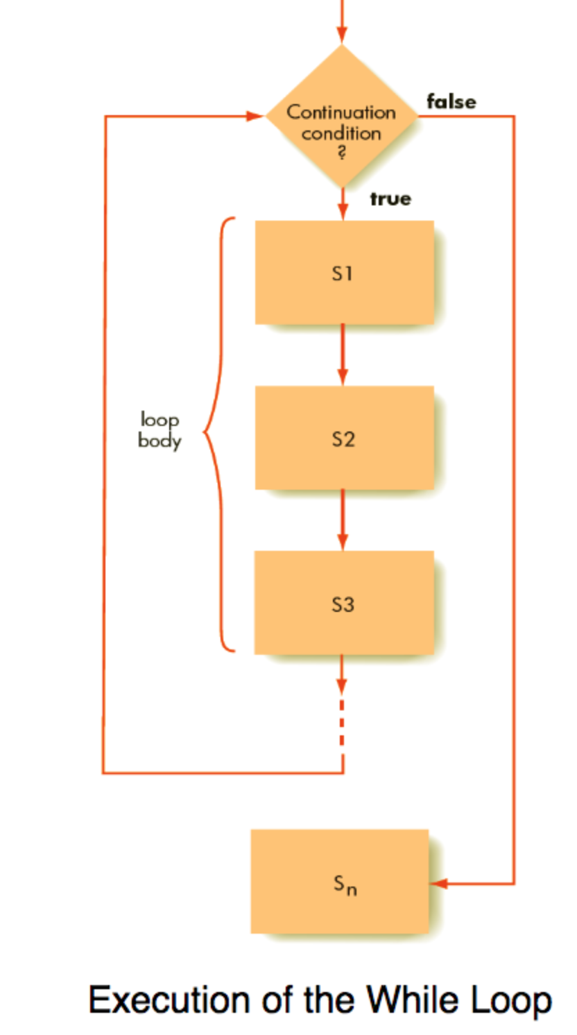 Continuation condition is tested at the beginning of each pass through the loop