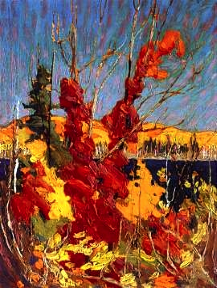 1914 - 1st sketching trip to Algonquin park - maple - the red takes your eyes around the photo it’s the focus.