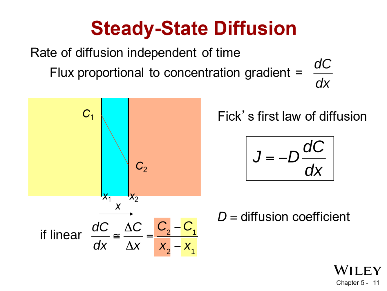 the rate of accumulation (or depletion) of concentration within the volume as proportional to the local curvature of the concentration gradient.
