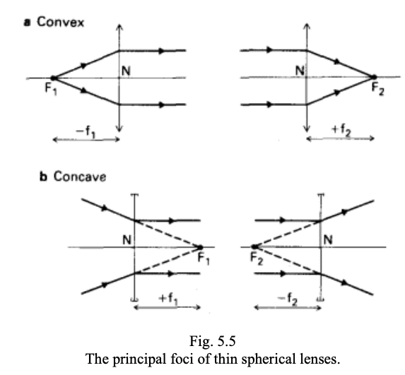 there is a principal focus on each side of the lens, equidistant from the nodal point