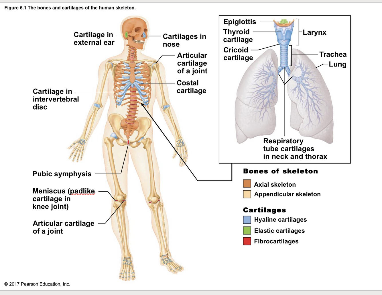 Photo: The bones and cartilage of human skeleton - what are the 3 types of cartilage and where can they be found? Take note of axial and appendicular regions.