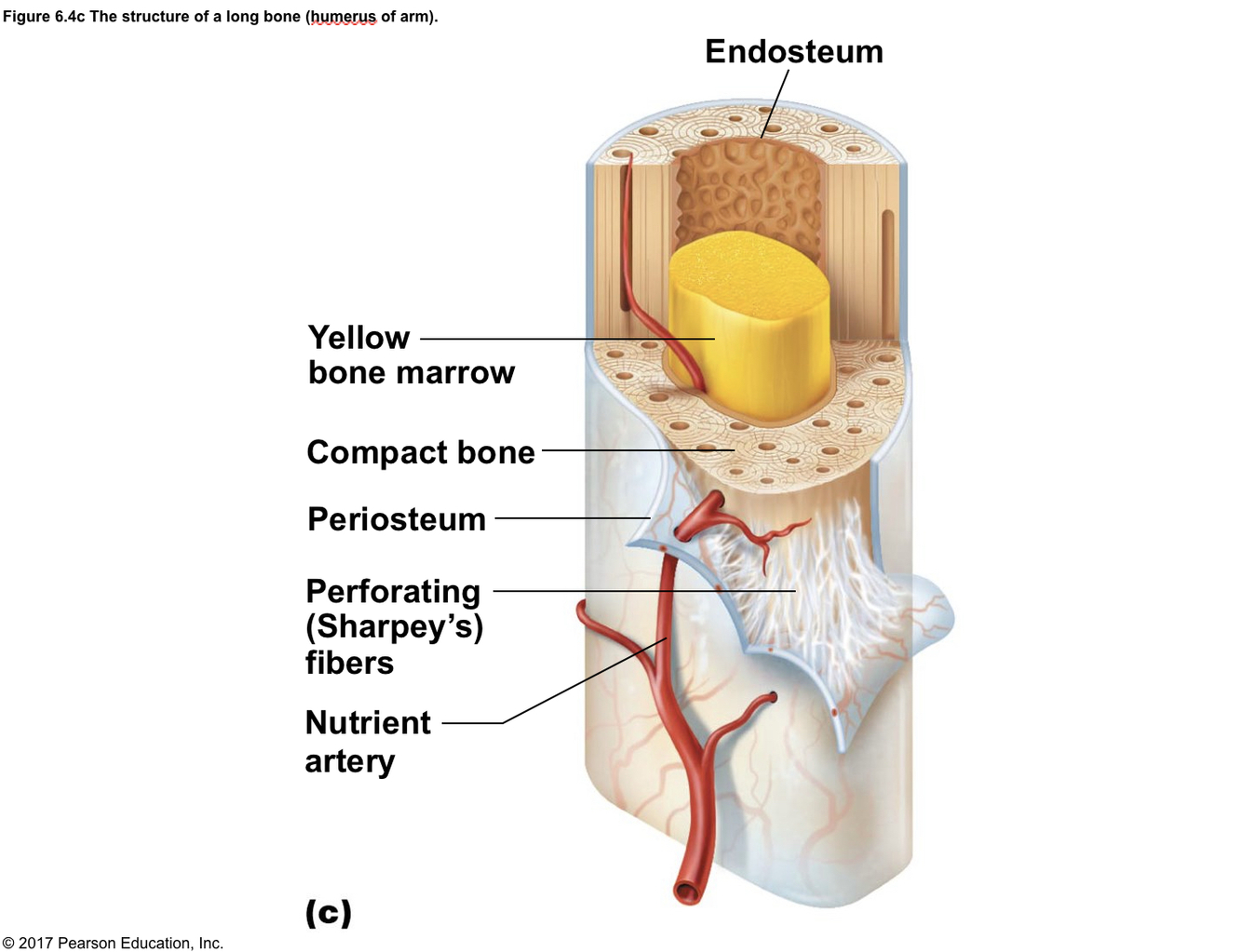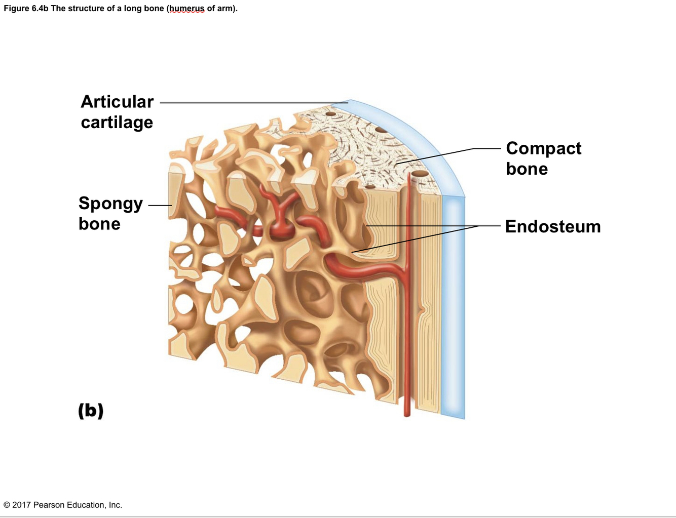 The compact bone is sandwiched between connective tissue membranes: Periosteum covers outside of compact bone; endosteum covers inside of compact bone.
