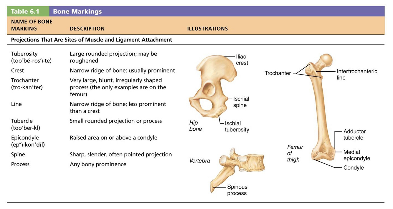 Bone markings are the sights of muscle, ligament and tendon attachments on the external surface of bones.