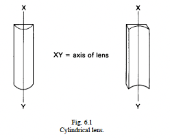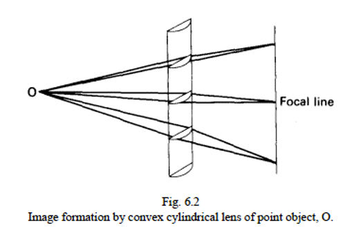 Formation of a line image of a point object - called the focal line, parallel to the axis of the cylinder