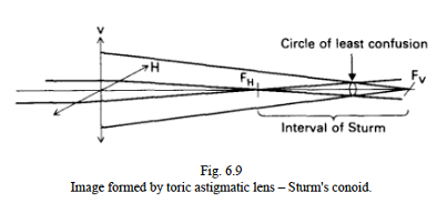 principal meridians form separate line foci at right angles to each other - Sturm’s conoid