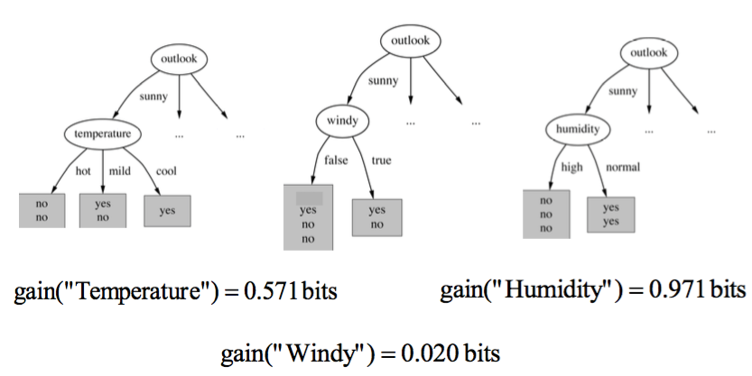 Gain(S,a) is the information gained adding a sub-tree (Reduction in number of bits needed to classify an instance)