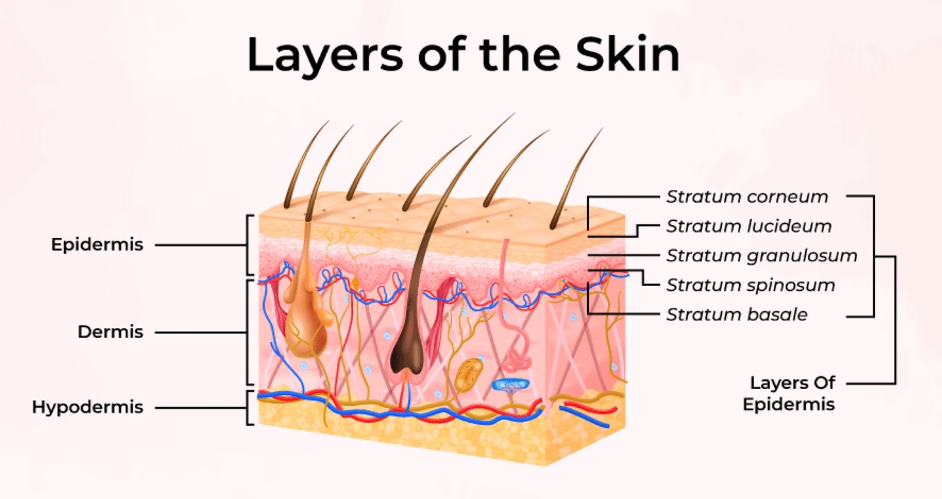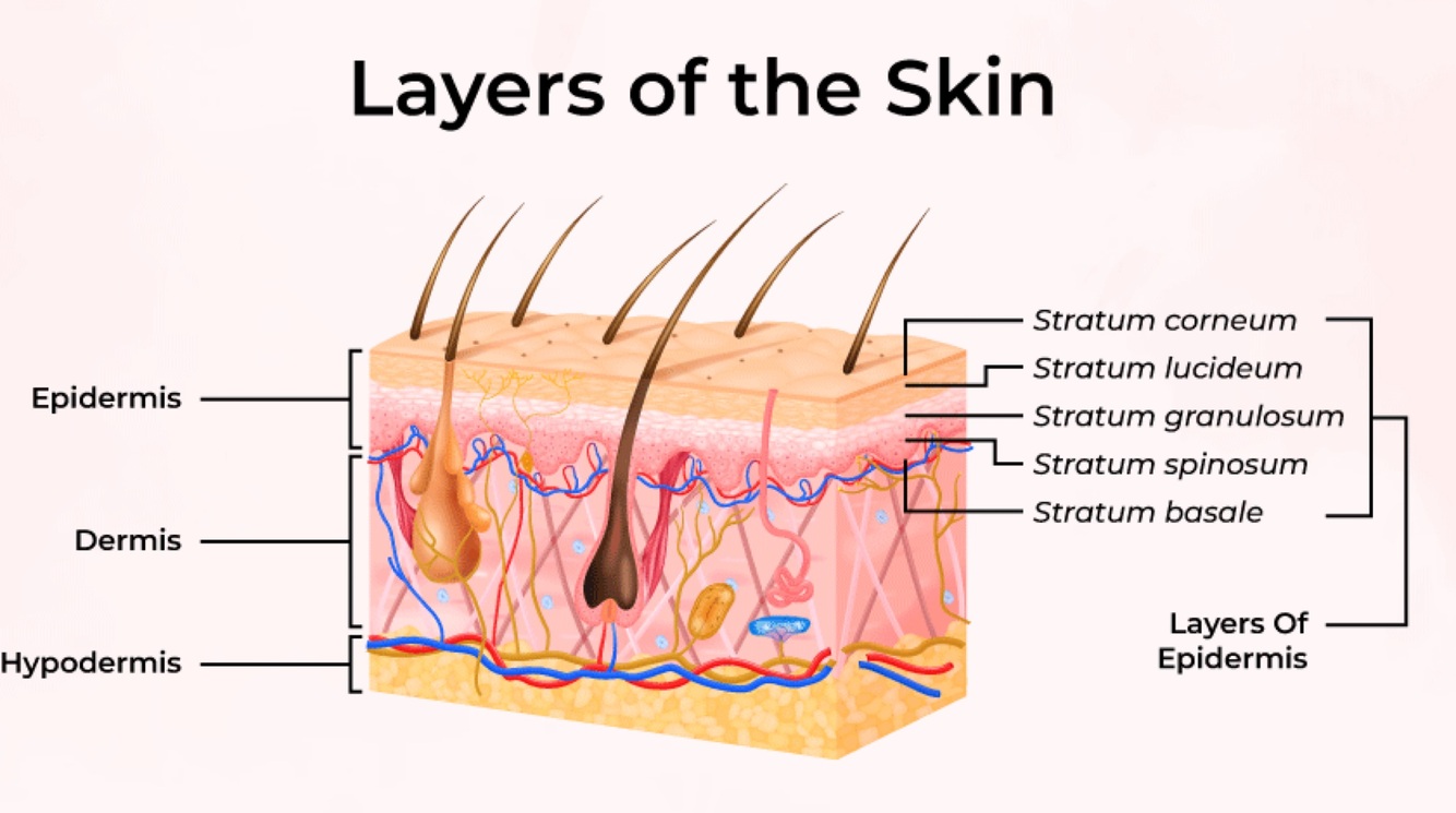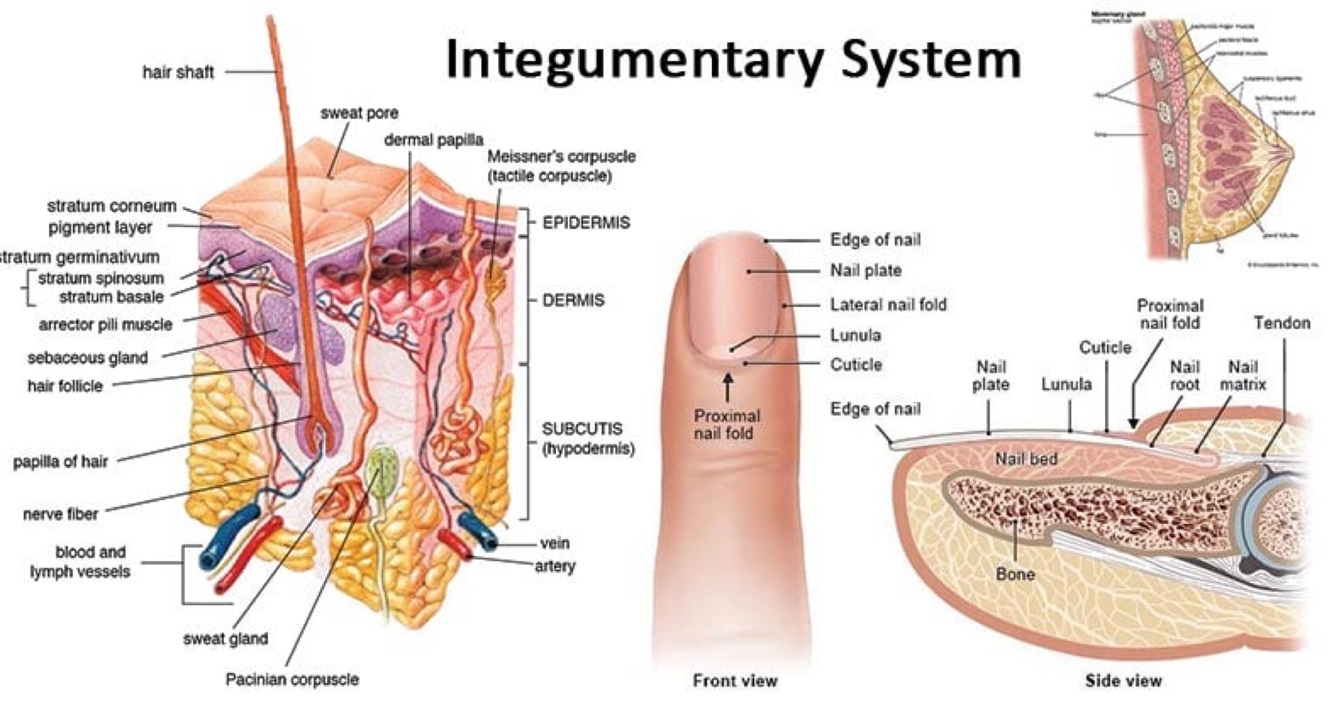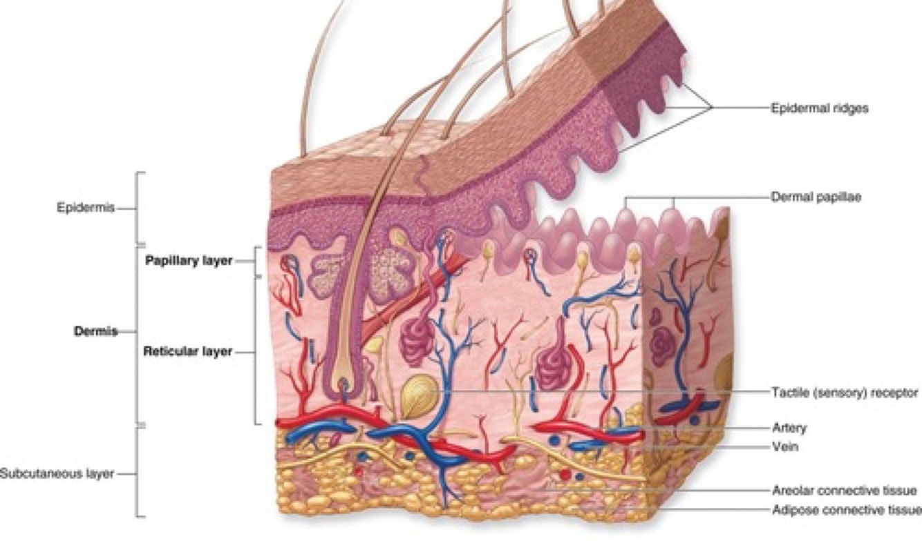 has no hair follicles or sebaceous glands (but has sweat glands)