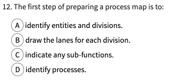 The first step in preparing a process map is to: