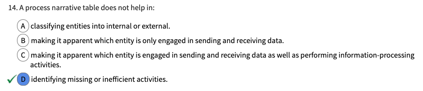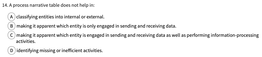 A process narrative table does not help in: