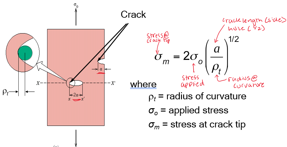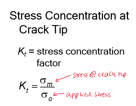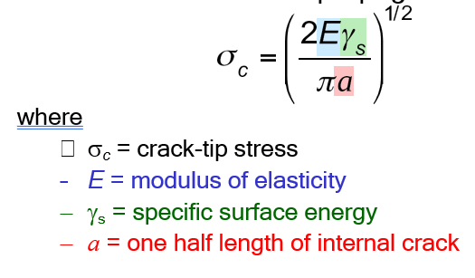 When the stress at the crack tip (σm) > (σc) critical stress for crack propagation