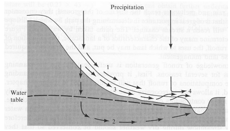Rain and snowmelt water take various paths to streams. Each path contributes differently to;