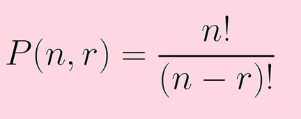 The number of permutations of r objects from n is given by nPr = n! / (n - r)!