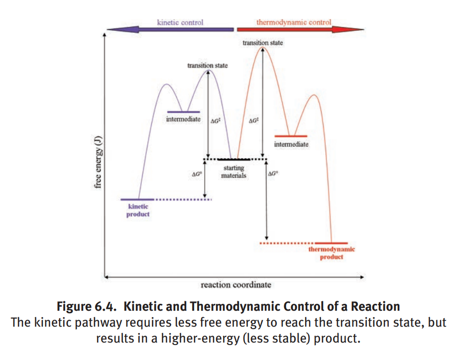 ______ are higher in free energy than thermodynamic products and can form at lower temperatures. These are sometimes termed “fast” products because they can form more quickly under such conditions.