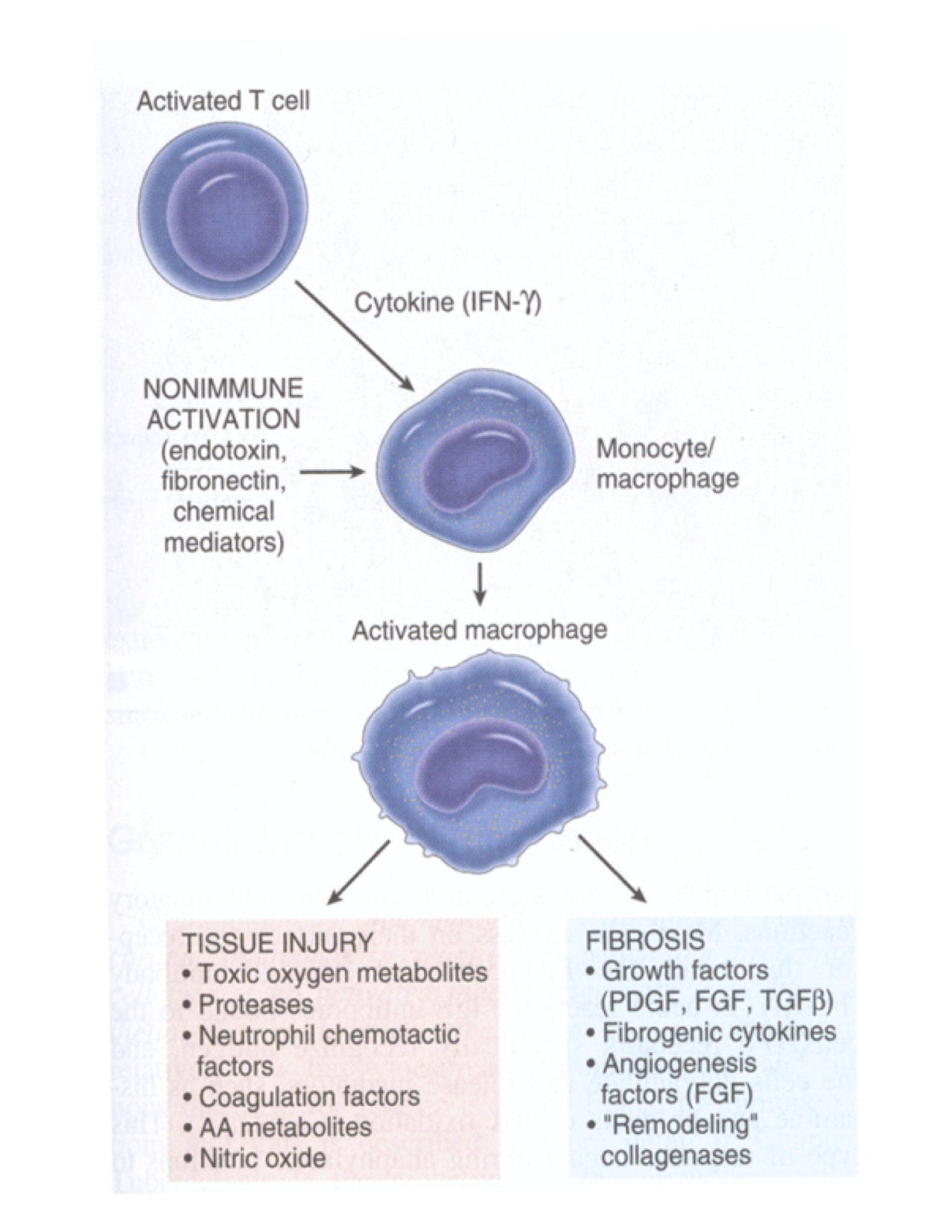 what are the two stimuli for macrophage activation? what are the outcomes?