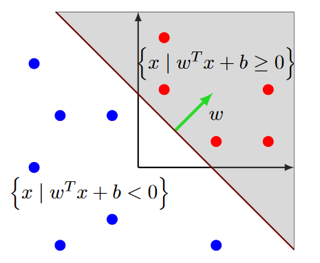 Es gibt eine lineare funktion im Datenraum, welche die Klassen (meist 2) voneinander trennt.