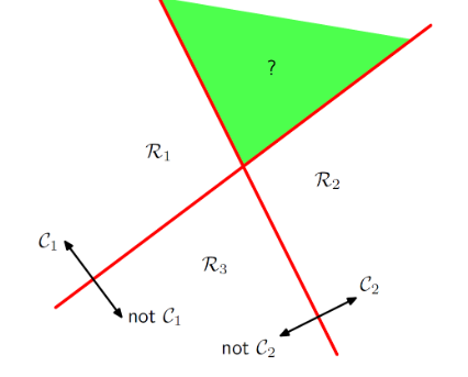 Wenn wir nur ein “one-versus-the-rest” Klassifikator haben, entstehen Bereiche ohne Zuweisung.