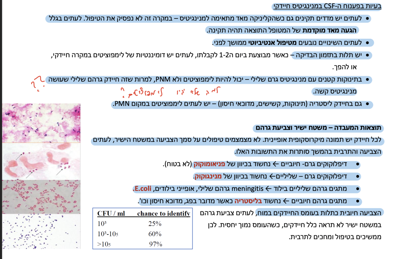 כשיש חשד קליני למנינגיטיס- מעדיפים לעשות את הבדיקה בכל חשד למרות שהיא פולשנית.