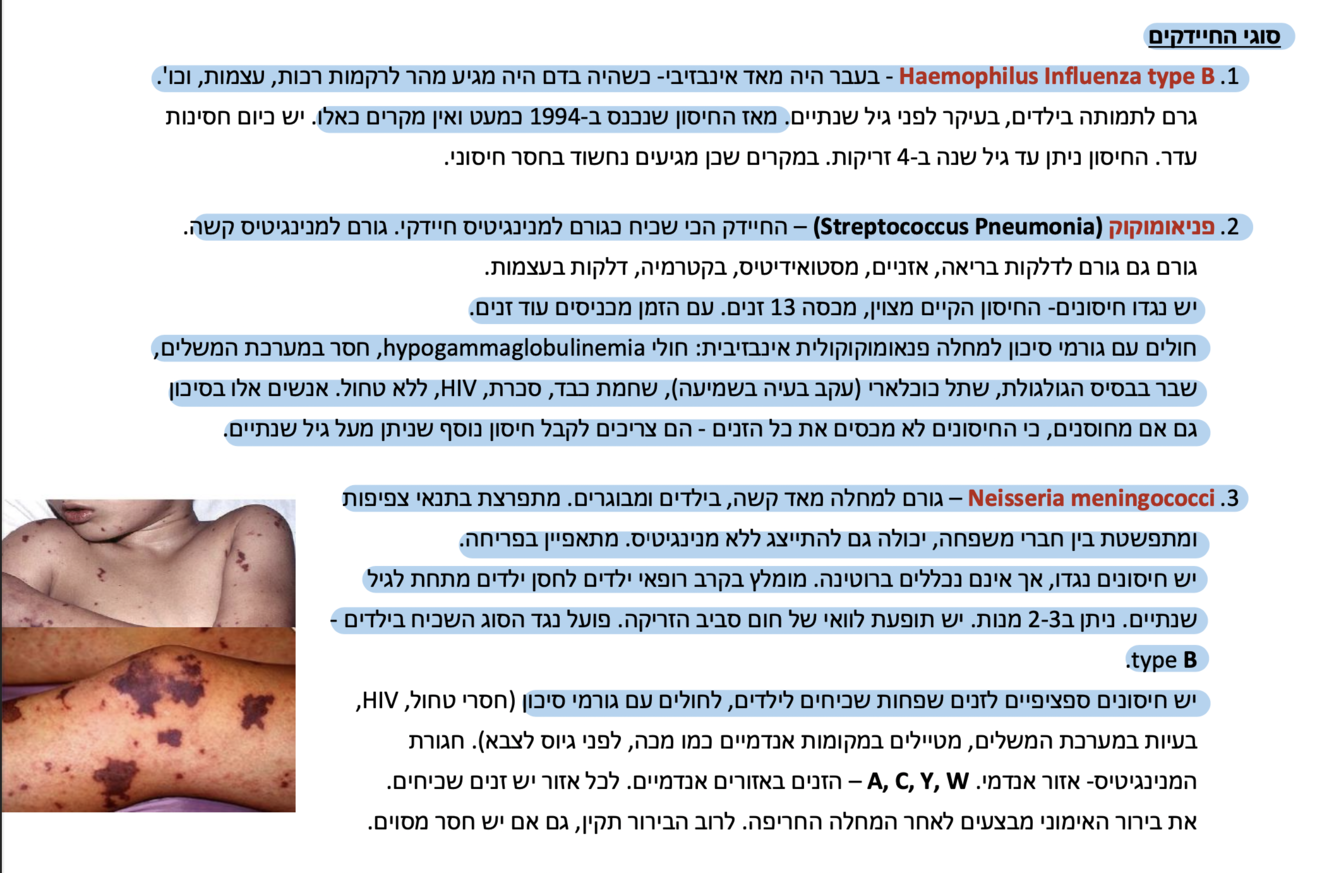 על אילו סוגי חיידקים פירטו בהרצאה בהקשר של מנינגיטיס?