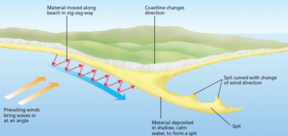 What is a curved spit indicative of? [Use a diagram if necessary.]