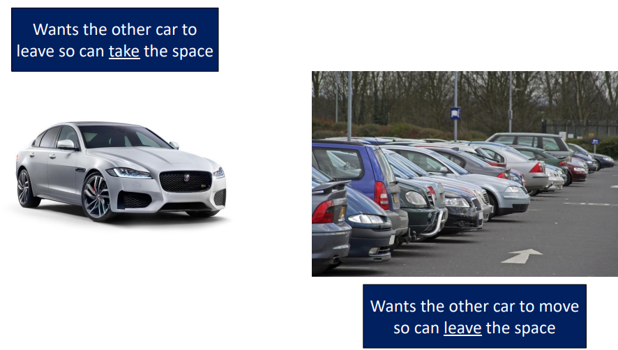 Two cars coming from opposite directions have to cross a single-lane bridge.