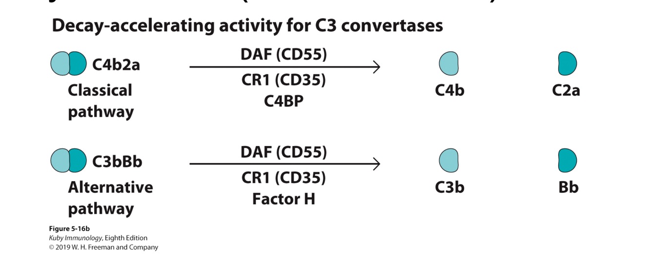 - DAF (CD55), CR1, C4BP (C4 binding protein)