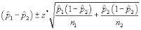 SRS for each sample, two independent samples, normality [np>10, n(1-p)>10], population 10x sample size