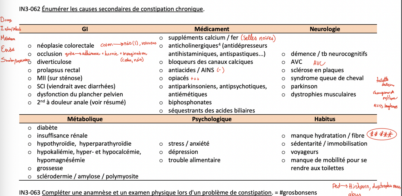 Constipation: Causes secondaires - GI