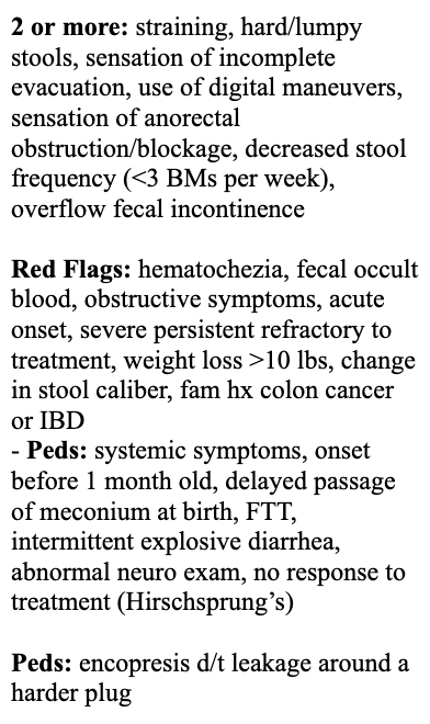 Describe the diagnosis of constipation