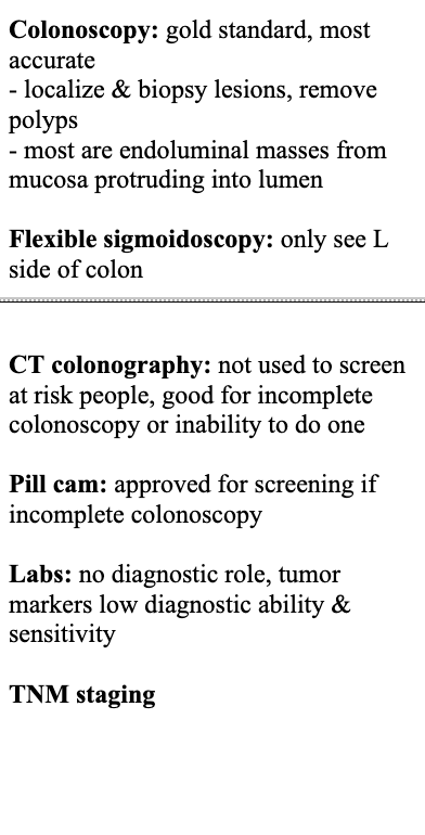 Describe the diagnosis of CRC