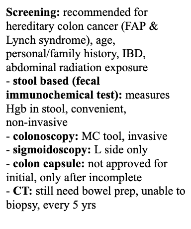Describe the screening for CRC