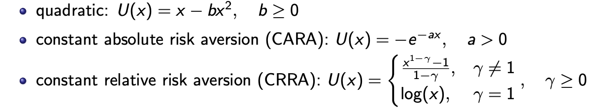 Concavity (risk aversion): U′′(x) < 0