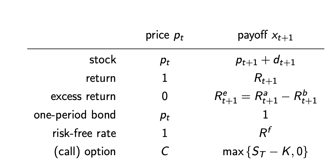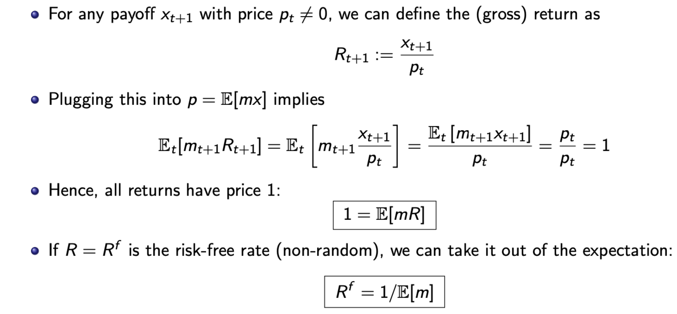 We want to determine the time-t value of a time-t + 1 payoff xt+1 (random variable)