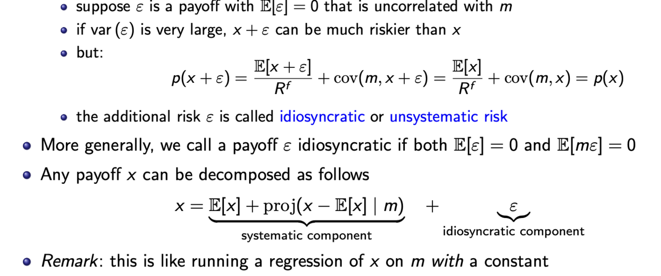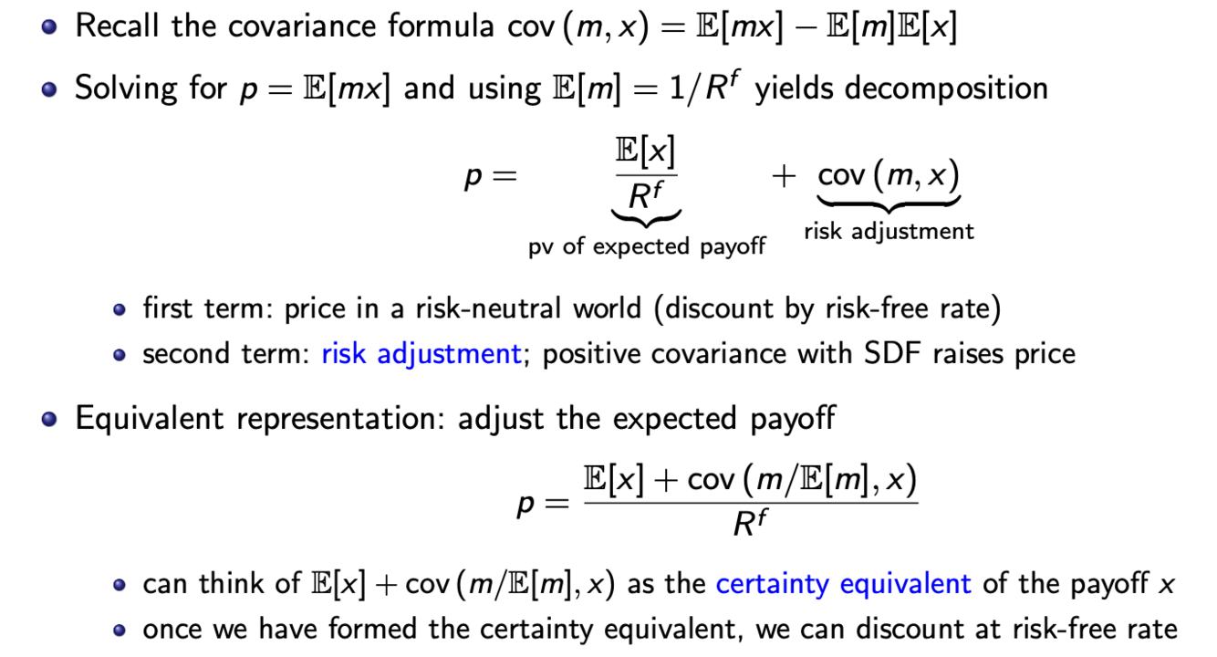 Risk adjustment term tells us: covariance cov(m,x) matters, not variance var(x)